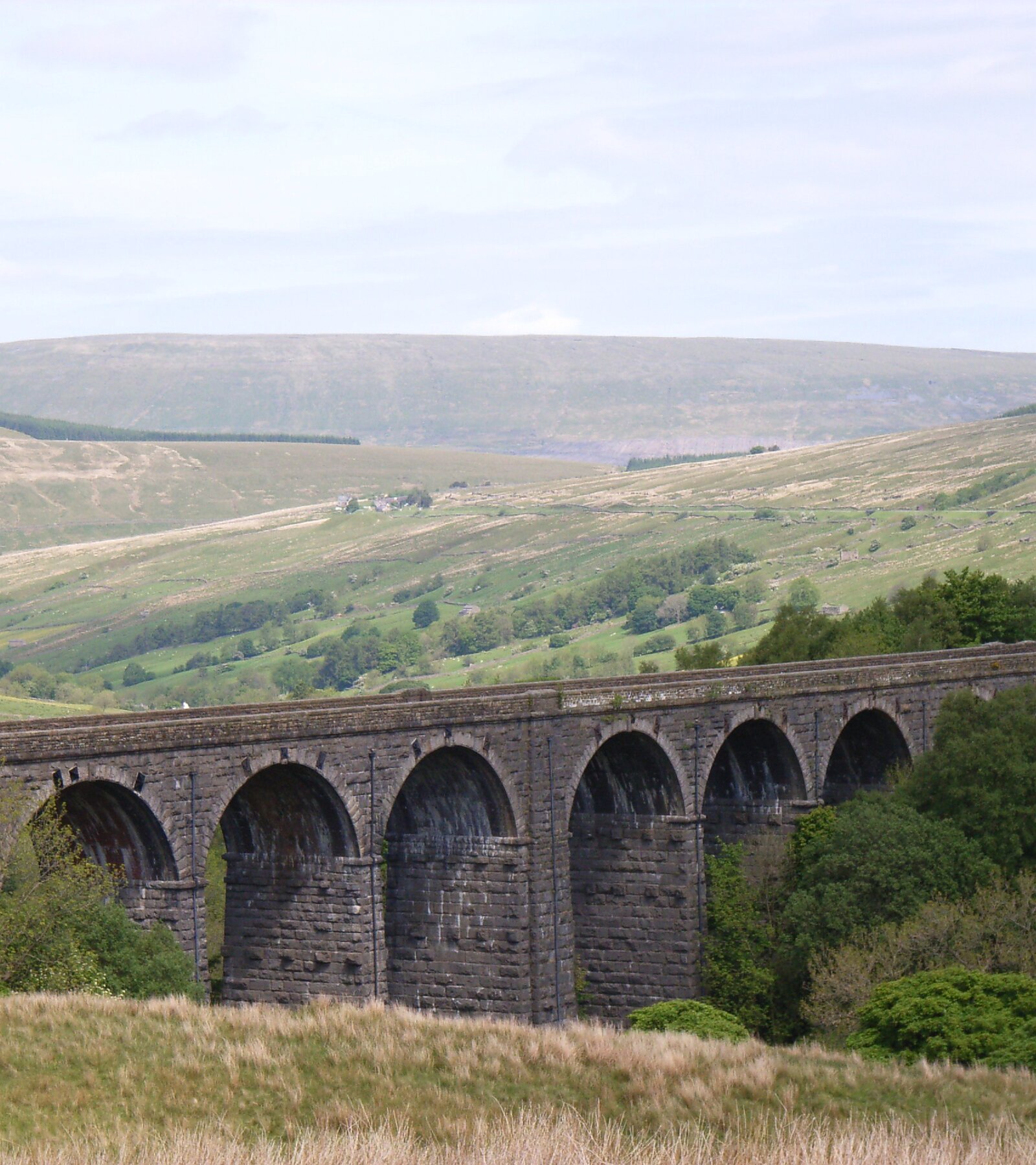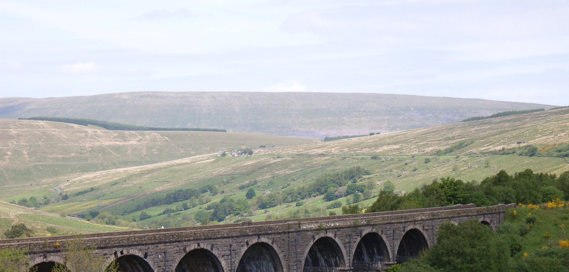 After re-joining the Dales Way, a brief climb up onto marshy upland followed by a long but pleasant road walk beside the infant River Dee.br>The spectacular man-made Dent Head Viaduct contrasted quite markedly with the idyllic pastoral landscape around Dent. Once again, the day ended with a climb - away from the Dales Way - this time to the altogether more comfortable Dalesman Inn at Sedburgh.